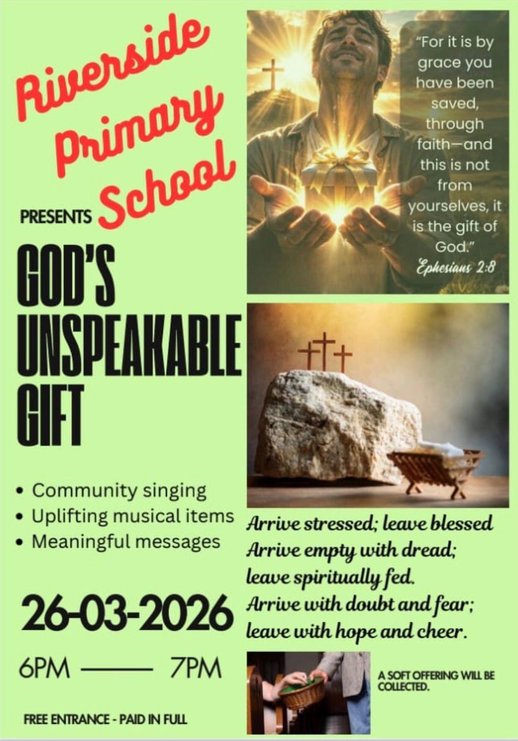 Celebrate the true meaning of Easter with us at Riverside SDA Primary School—an evening of worship, music, and heartfelt storytelling.